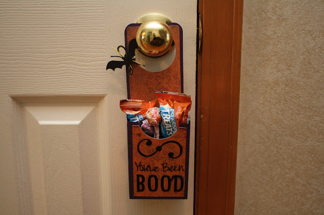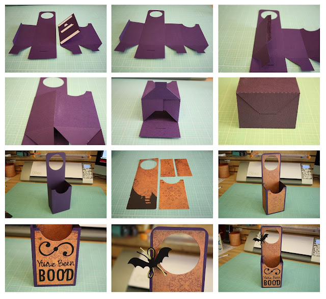 Do you "Boo" your neighborhood? We love to deliver little treats to our neighbors old and young and these little boxes make it so much fun! We fill the box with candy and wait until it is dusk out and then we place the boxes on the door handles and ring the doorbell and run! Once you have been "Boo'd" you are suppose to "Boo" someone else which leads to a lot of fun little treats for everyone and the kids just LOVE it! This box is 9-1/2" x 3-1/4" x 2-1/4" and holds lots and lots of goodies. The file comes with the box base, four decorative panels, the sentiment pieces, the bat, and the decorative swirl and it is compatible with both the 12x12 and 8-1/2x12 mats!